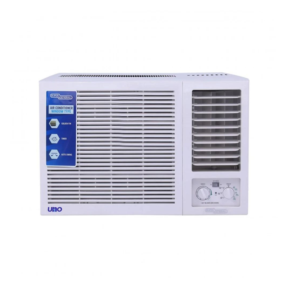 مكيف شباك سوبر جنرال 24000 وحدة 2.5 طن بارد – قدرة 24000 وحدة، تقنية التبخير الذاتي، إزالة الجليد التلقائي، زعانف ذهبية، تبريد سريع، بلد الصنع: الصين.